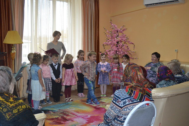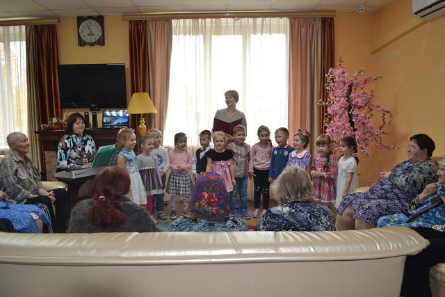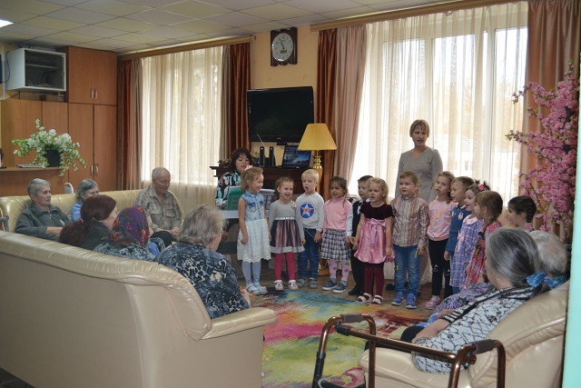 3 октября само «Солнышко» заглянуло в Кольчугинский дом милосердия - с концертной программой «Хорошо нам рядышком с дедушкой и бабушкой» поздравить с Днём пожилого человека пришли ребята из детского сада «Солнышко» п.Бавлены. Внимание детей растрогало пожилых людей, а концертные номера подняли настроение. Ребята пели песни, танцевали, читали стихи. Седовласые зрители с улыбкой и неподдельным теплом встречали каждый номер в исполнении юных гостей. Да и сами юные артисты не скупились на улыбки. Воспитанники детского сада подошли к мероприятию с чувством ответственности, старались донести до слушателя тепло своего сердца. А в заключение концерта ребята подготовили для всех подарки, сделанные с любовью своими руками.