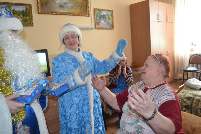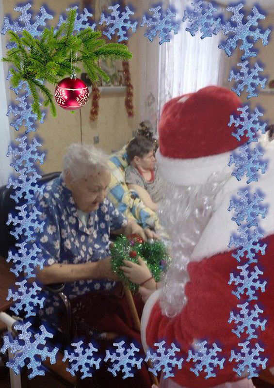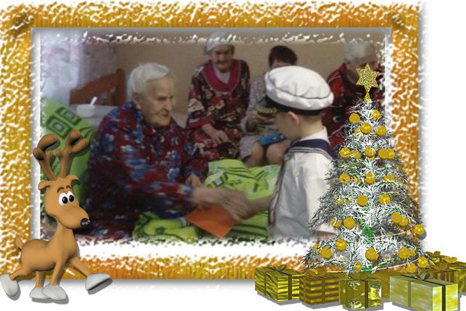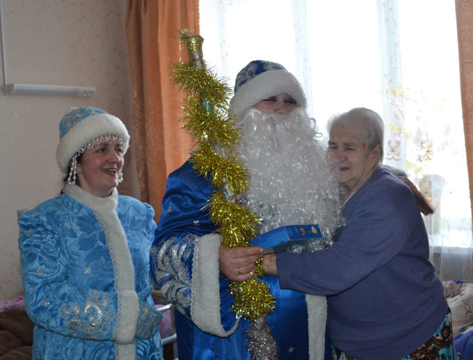 Царила атмосфера тепла и дружбы, дети пели песни, рассказывали стихи, танцевали, поздравляли бабушек с наступающим Новым годом. Ребятам было приятно выступать перед этими людьми, дарить радость и хорошее настроение. Яркие и зажигательные номера оставили неизгладимые впечатления в душах не только бабушек, но и всех присутствующих. Дед Мороз, которого звали не только ребятишки, но и старшее поколение пришел с подарками. Подарки были сделаны руками детей и родителей. Здесь был и символ года Петушок и новогодние украшения и поздравительные открытки от снеговиков. Выступление детей является своеобразной данью уважения и преклонения перед людьми старшего поколения.